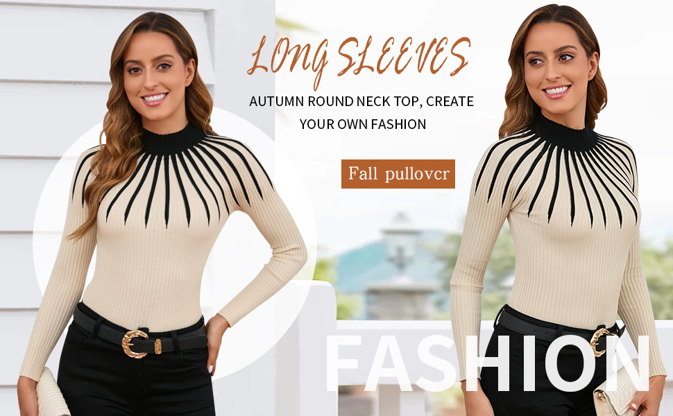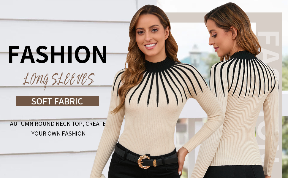 Womenu0027s Long Sleeve Crewneck Shirts Knit Sweater Slim Fitted Casual Basic Tee Tops